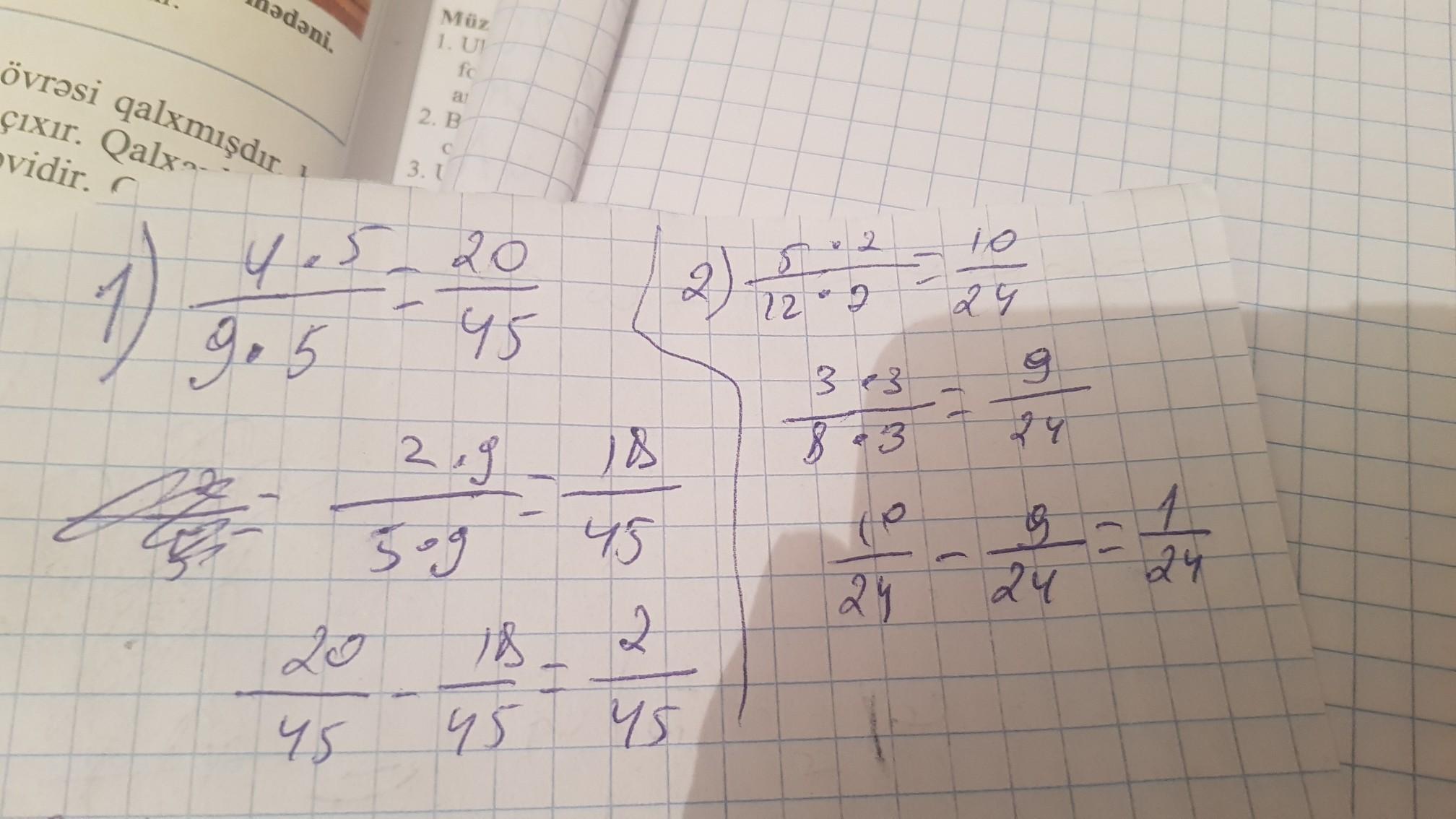 4/9 - 2/5 = 20/45 - 18/45 = 2/45