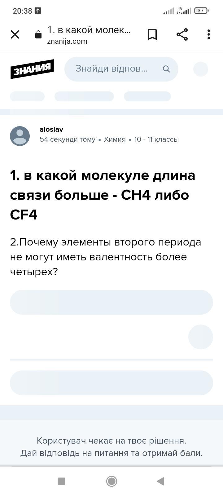 1. в какой молекуле длина связи больше - СН4 либо СF4