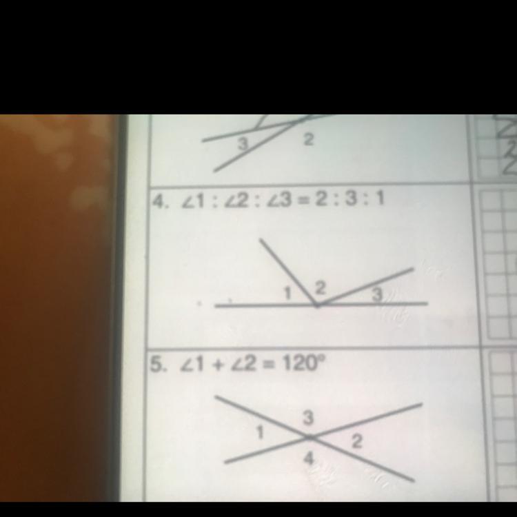 4. Нехай кут2 буде - (2х), кут3 - (3х), а кут1 - (х). Складаємо рівняння: 2х+3х+х=180°; 6х=180°; х=30; кут2=2×30=60°; кут3=3×30=90°; кут1=1×30=30°