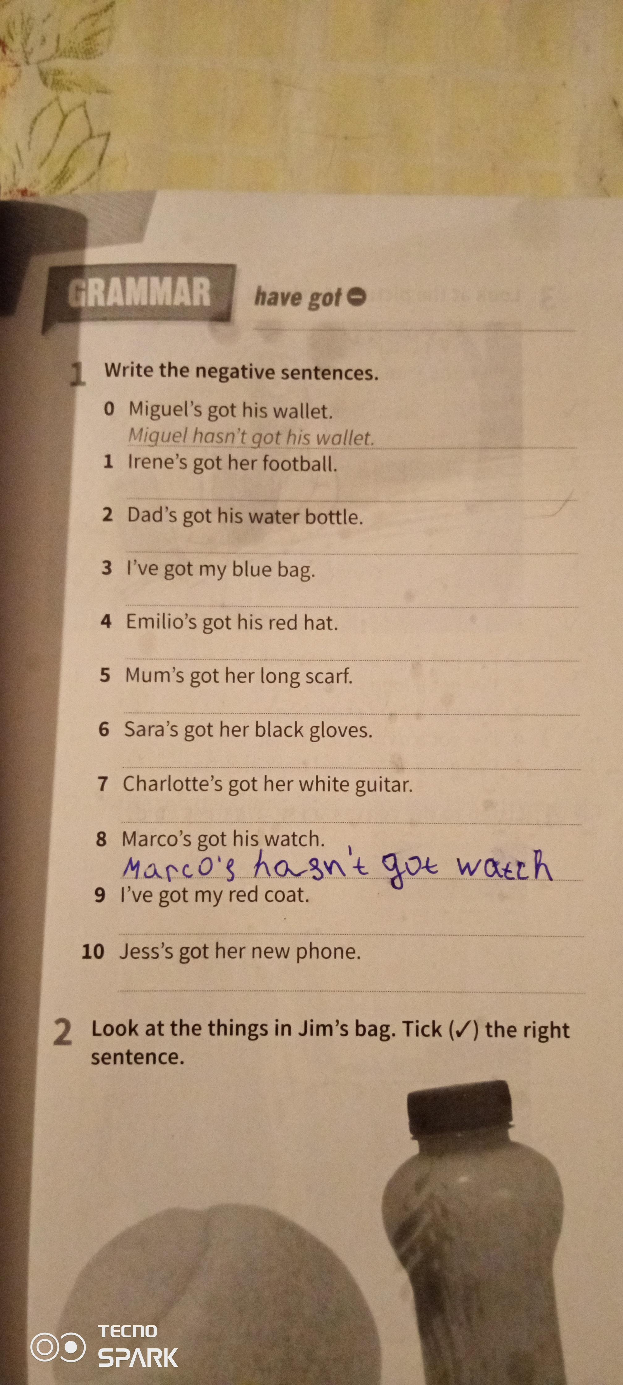 Просто напиши hasn't got і до речі там не треба писати. 's