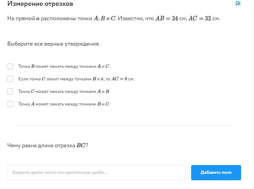 На прямой a расположены точки A, B и C . Известно, что AB = 24 см, AC = 32 см.