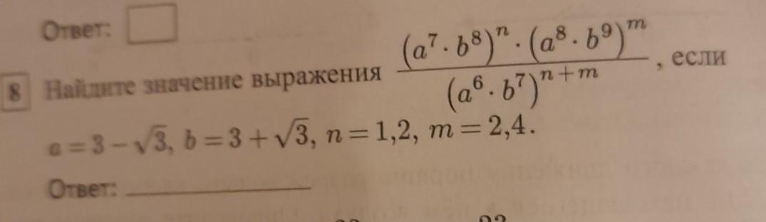 (a^7×b^8)^n × (a^8×b^9)^m/(a^6×b^7)^n+m