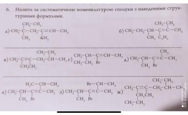 6. Назвіть за систематичною номенклатурою сполуки з наведеними струк-