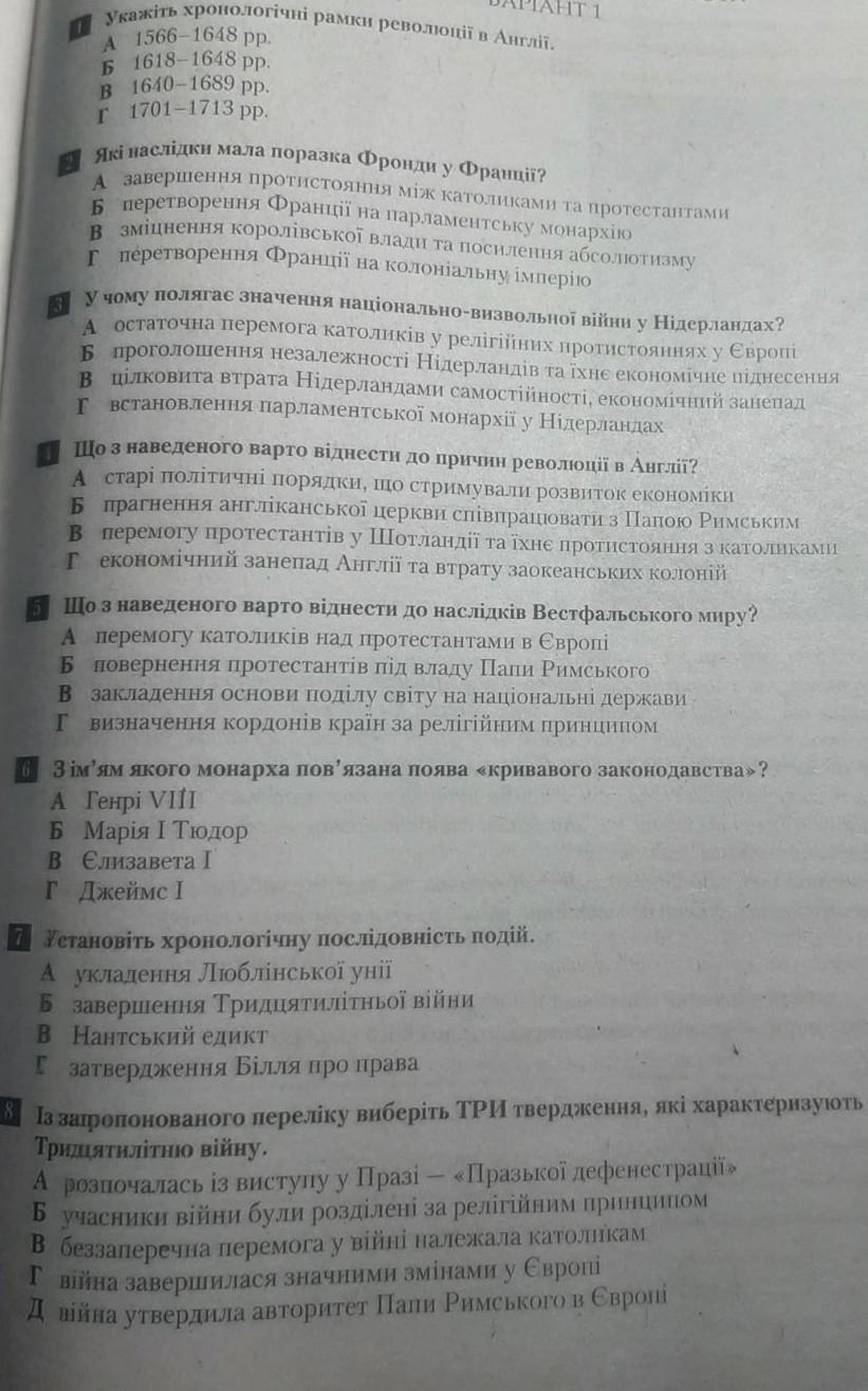 1. Укажіть хронологічні рамки революції в Англії