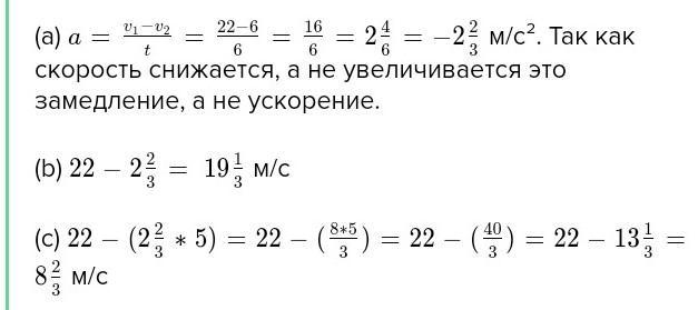 Машина за 4 с замедляет движение с 22 м/с до 6 м/с. Рассчитайте для