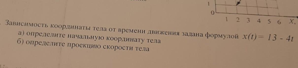 . Зависимость координаты тела от времени движения задана формулой x(t)= 13 - 41 a) определите начальную координату тела б) определите проекцию скорости тела