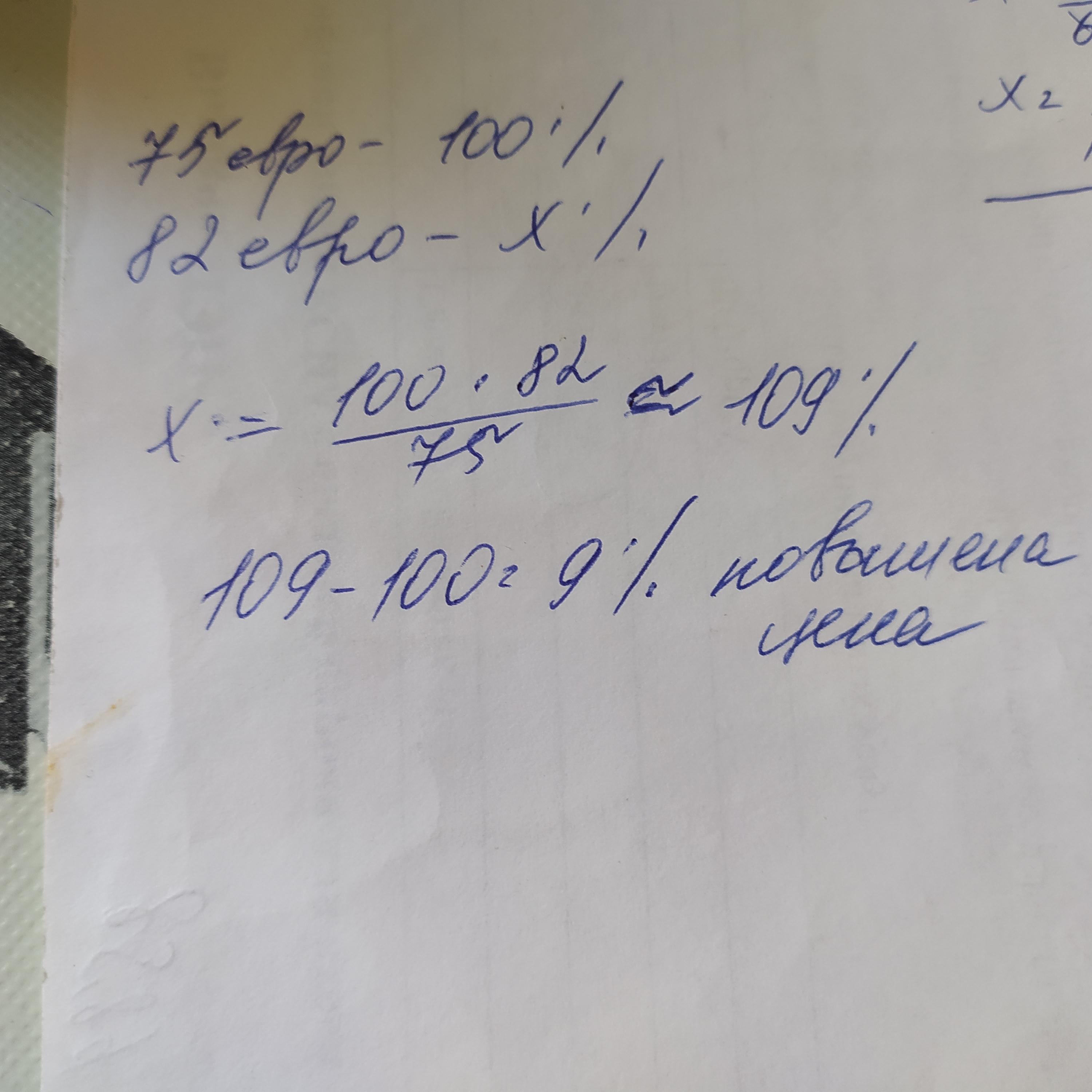 Платье стоило 75 евро. После повышения цены платье стало стоить 82 евро. На