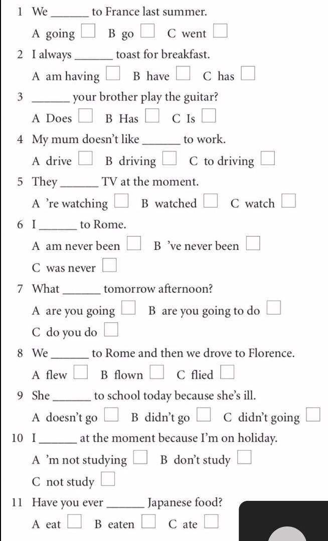 1 A,2 C,3 C,4 B,5 A,6 C,7 A,10 A,11 A. Я НЕ УВЕРЕН ЧТО ВСЁ ПРАВИЛЬНО И 8,9 Я НЕ ЗНАЮ