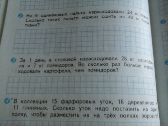 1) 24/6 = 4 метра ткани израсходовали на 1 пальто