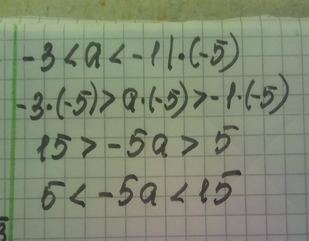 Помогите. Оцініть значення виразу -5а, якщо -3 < а < -1
