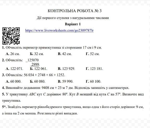 Ответ: 1. Г 2. А 3. Г 4. 9408+2370=11778 см. 5. Різносторонній 5* 25 см.
