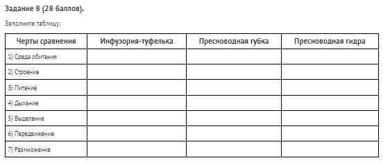 Черты сравнения Инфузория-туфелька Пресноводная губка Пресноводная гидра