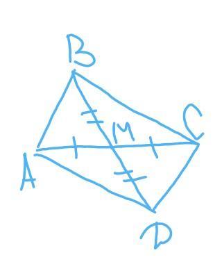 Т.к диагонали четырехугольника АВСD в точке пересечения делятся пополам,то АВСD -параллеллограмм.