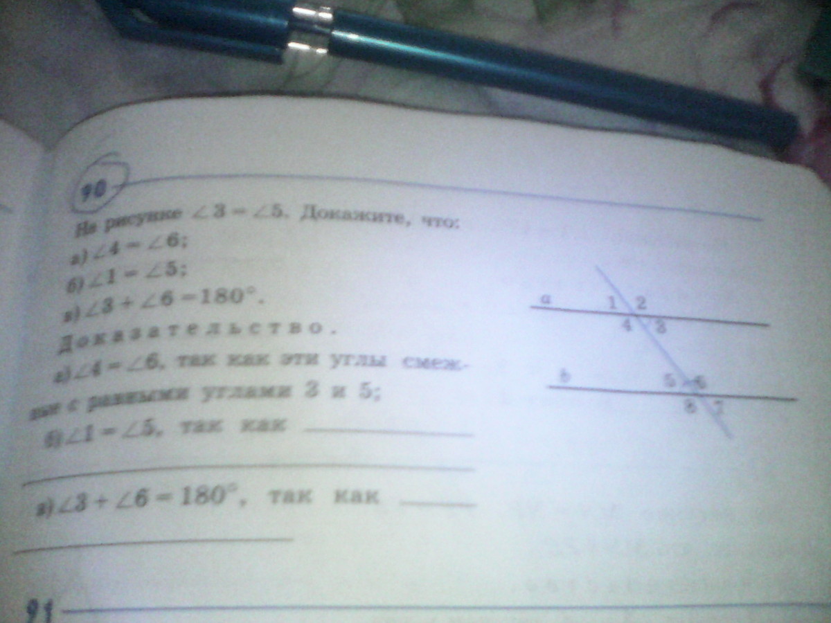 б) так как эти углы соответственные при параллельных прямых а и b (a//b, т.к. угол 3=углу5- накрест лежащие)