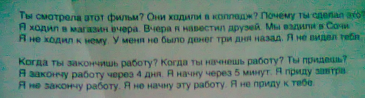 Have you seen this film? Did they go to the college? Why did you do that? I went to the shop yesterday. I invited my friends yesterday. We went to Sochi. I didn't come to him. I had not any money 3 days ago. I didn't see you.