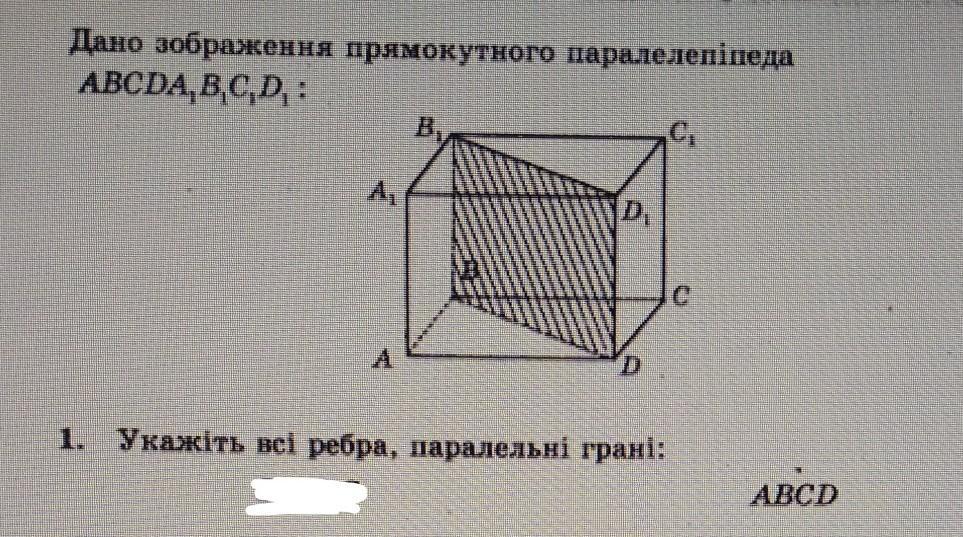 Дано изображение прямоугольного параллелепипеда ABCDA₁B₁C₁D₁ :