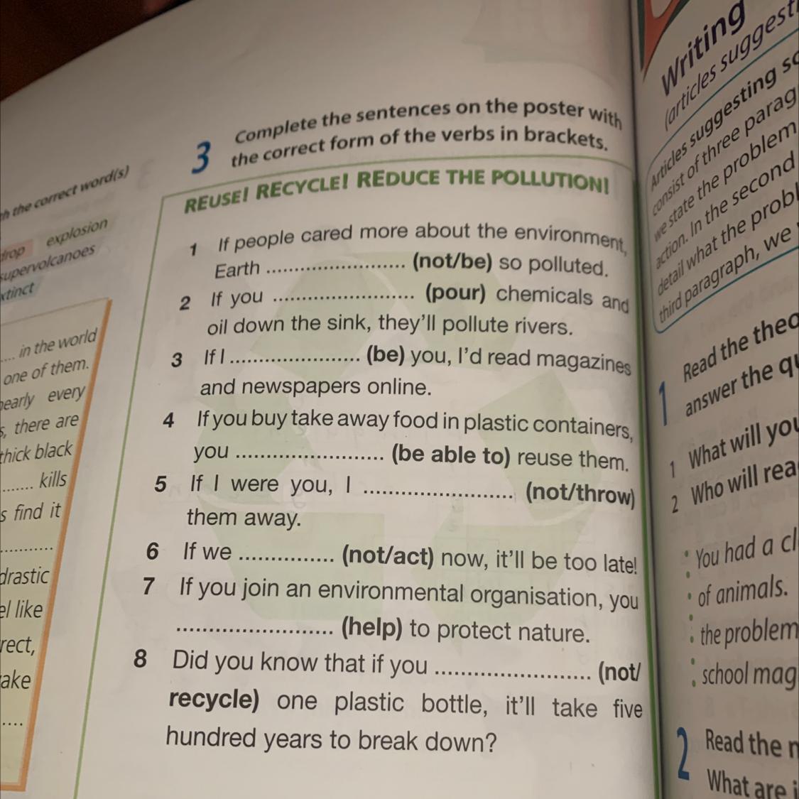 1 wouldnt be 2 pour 3 were 4 would be able to 5 wouldnt throw 6 dont act 7 will help 8 dont recycle