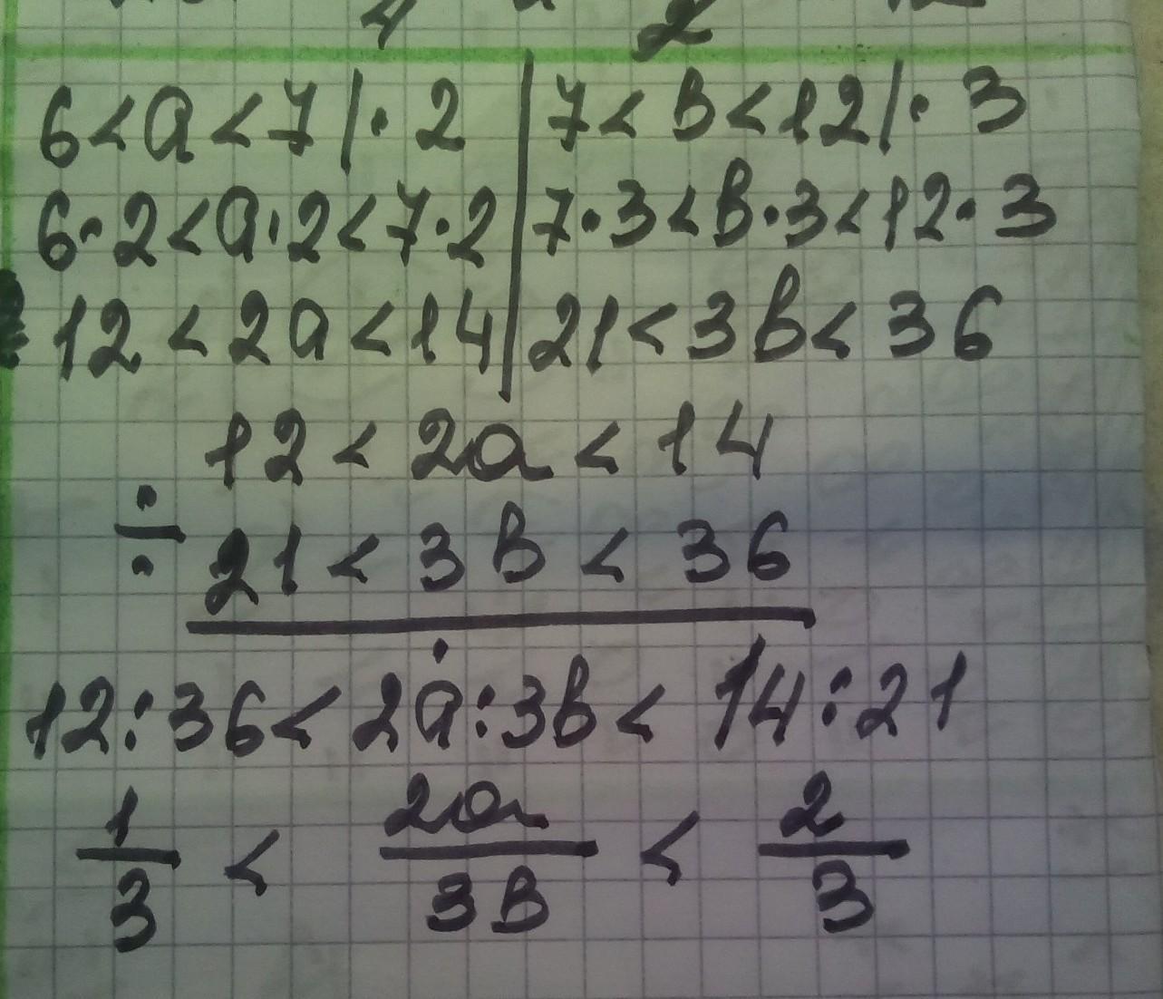 (2*6)/(3*7) < 2а/3b < (2*7)/(3*12)