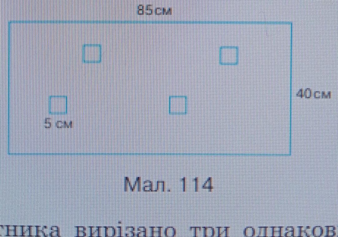 Із прямокутника вирізано чотири однакові квадрати. Зна- йдіть периметр фігури, яку зображено на малюнку 114.