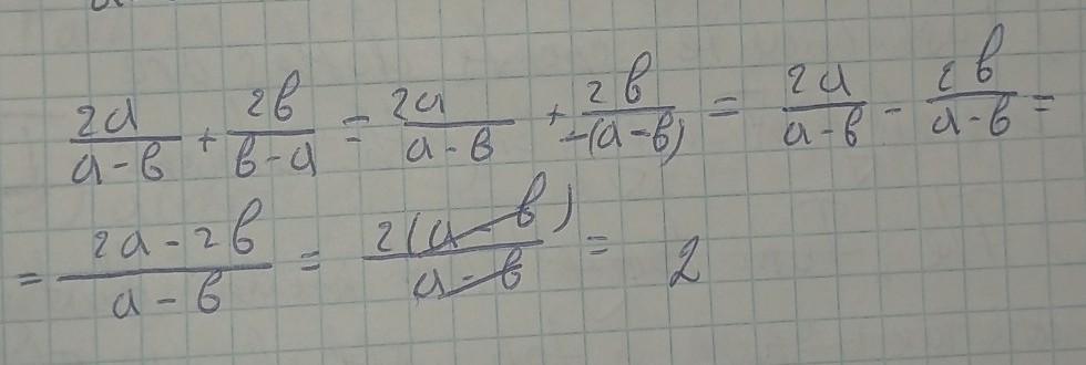 дякуюююю, а ви би ще не могли сказати скільки буде 2a/a-b+2b/b-a=.. (будь ласка, дуже потрібно)дякую