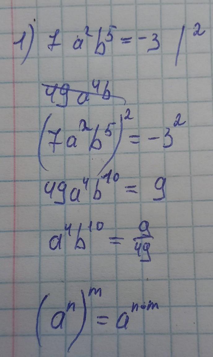 первое так(внизу расписал почему (7а²b⁵)²=49a⁴b¹⁰