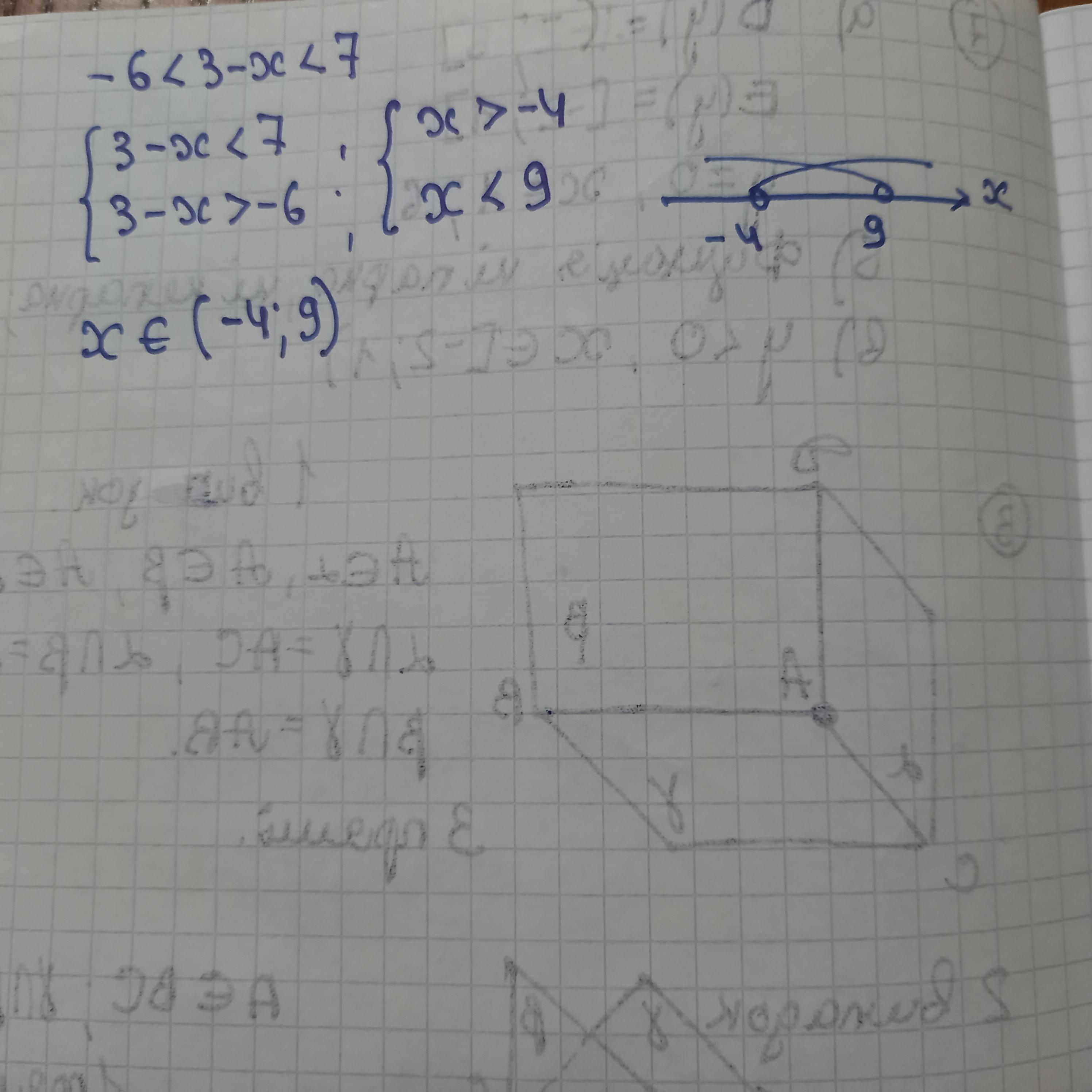 Розв'яжіть подвійну нерівність -6<3-x<7
