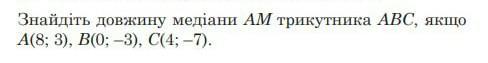 координаты середины BC M(2,-5); вектор AM (-6,-8); его длина 10.