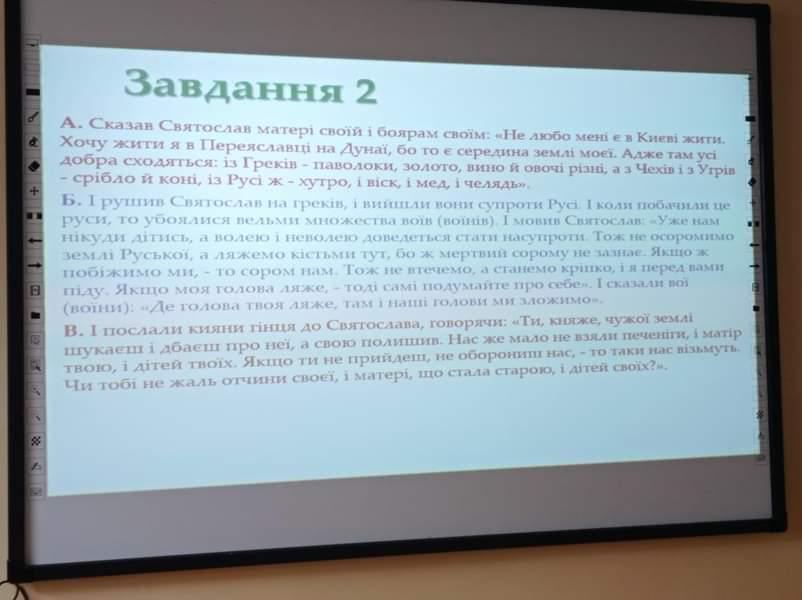 В. В джерелі описано 968 р. - напад печенігів на Київ. В результаті чого дружині князя вдалося зібратися з болгарських гарнізонів та маршем дійти до Києва і зняти облогу.