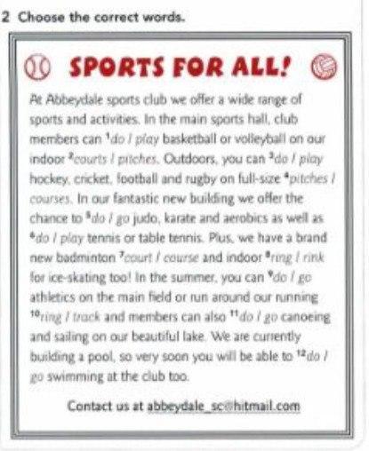 2 скрин: 1- play; 2- pitches, 3- play, 4- pitches, 5- go, 6- play, 7- court, 8- rink, 9- do, 10- track, 11- go 12- go