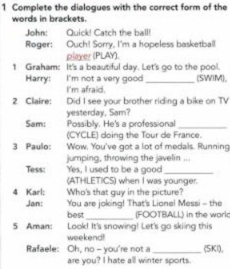 1 скрин: swimmer; cyclist; athlete; footballer; skier
