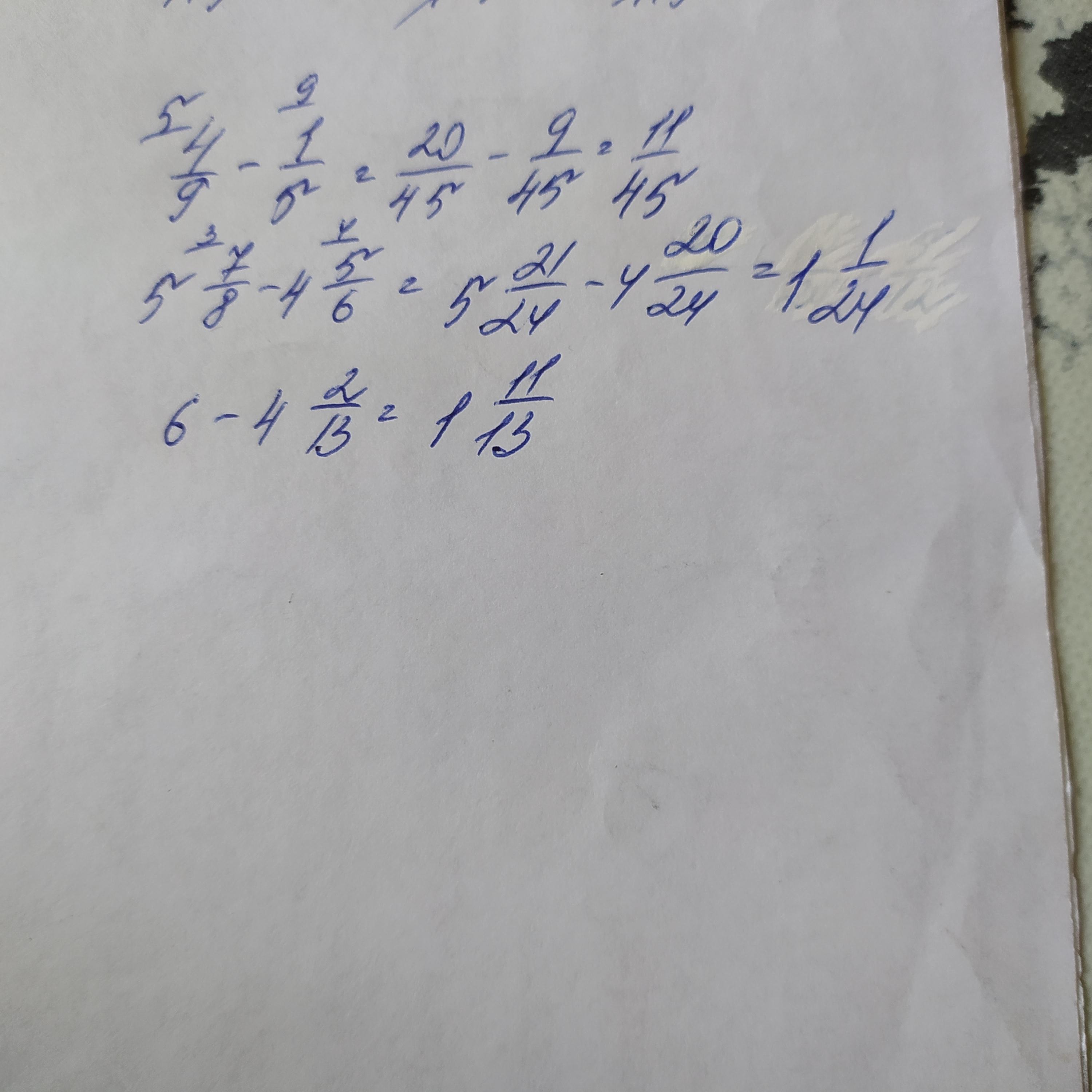 5 ⁷/₈-4 -⁵/₆ =5-4+⁷/₈-⁵/₆ =1+(7*3-5*4)/24=1¹/₂₄;