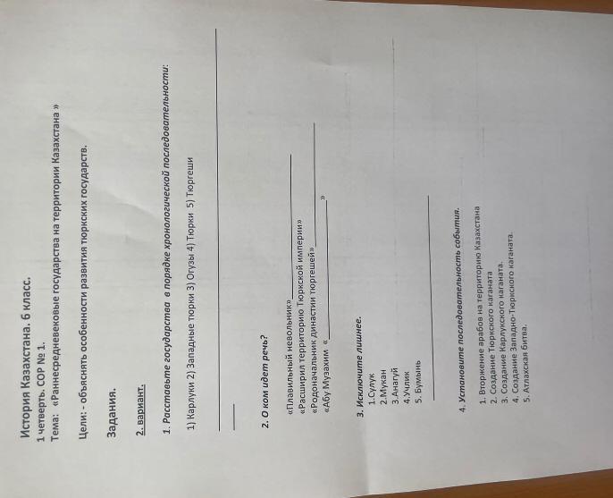 Помогите сор по Историй Казахстана 6 класс только делать (2-3-4) задание 1вое я сделала