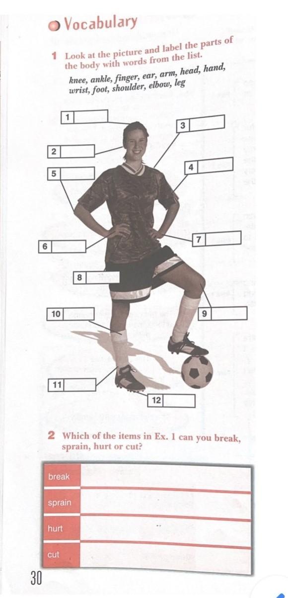 3)hurt-knee, wrist foot,elbow,leg