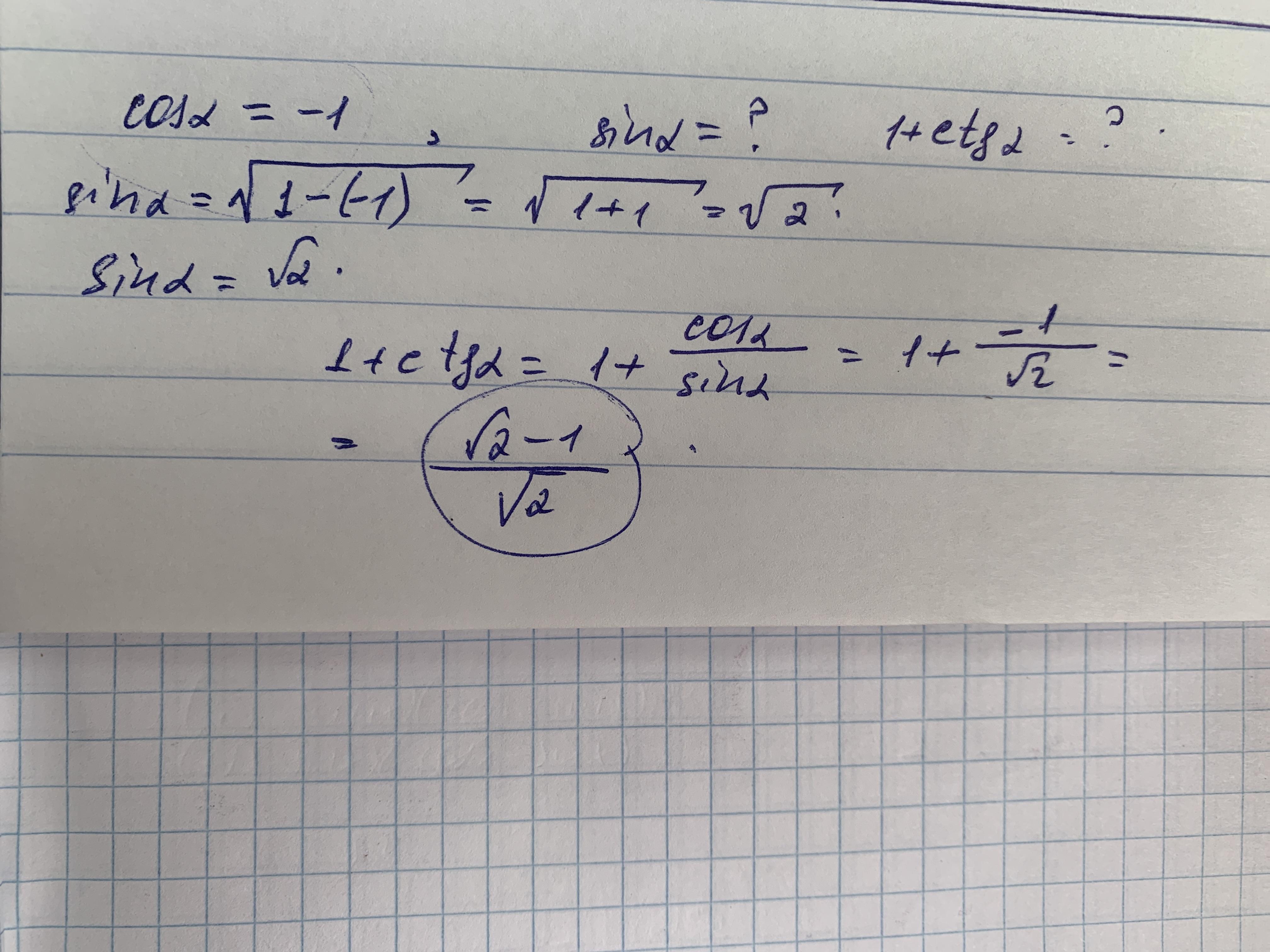 8. Відомо, що соsа=- 1) Знайдіть sin а. 2) Обчисліть значення виразу 1+ctga. Наведіть повне розв'язання задач