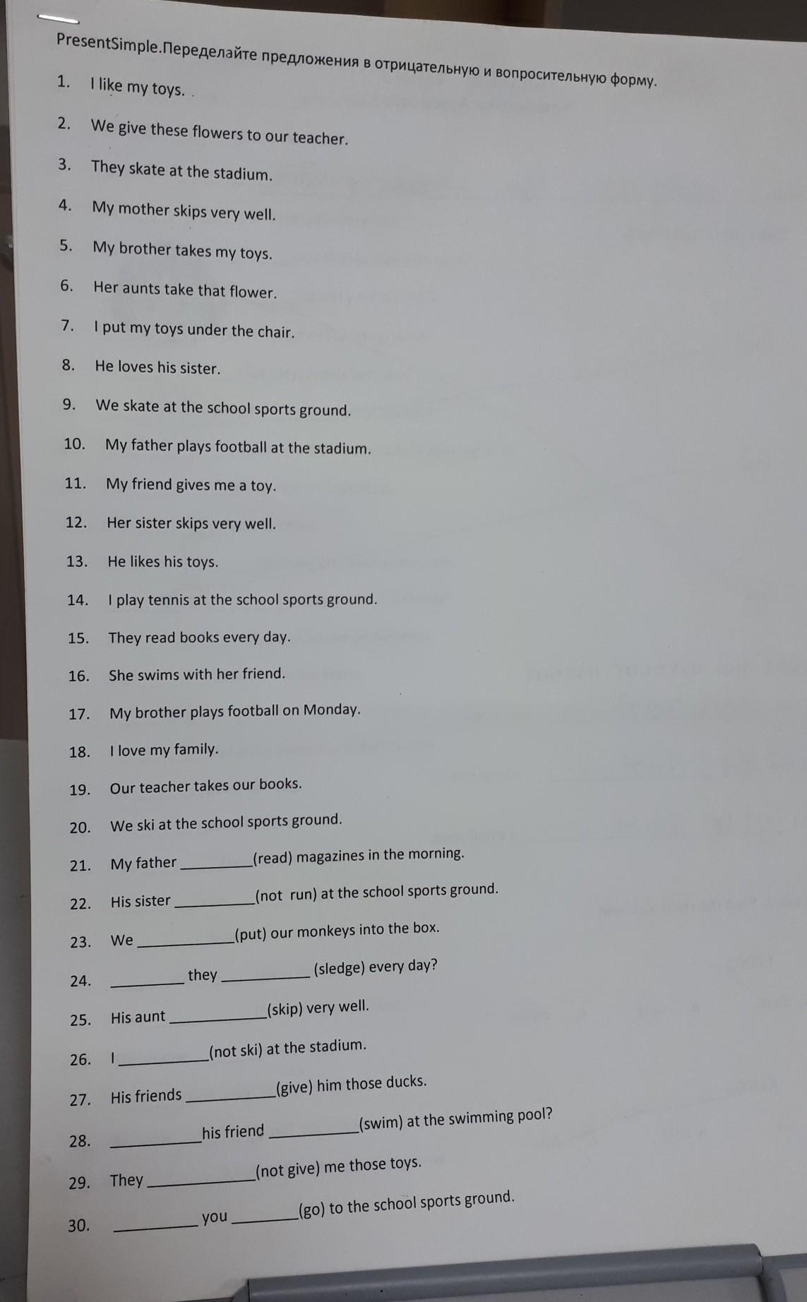 1 I don't like my toys. Do I like.......?