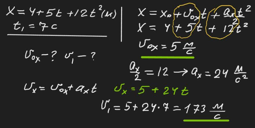 Рух тіла задано рівнянням х=4+5t+12t2 (в квадраті) , де всі величини виражено в