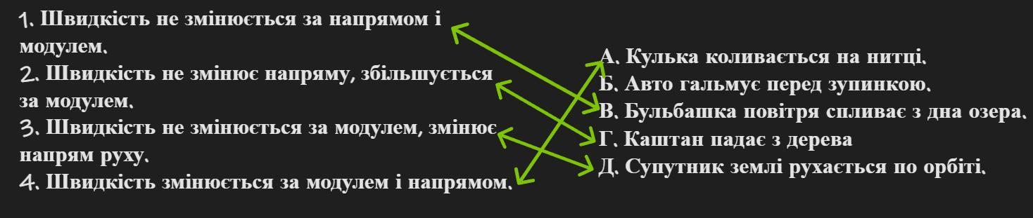 1. Встановіть відповідність «Характер зміни швидкості під час руху