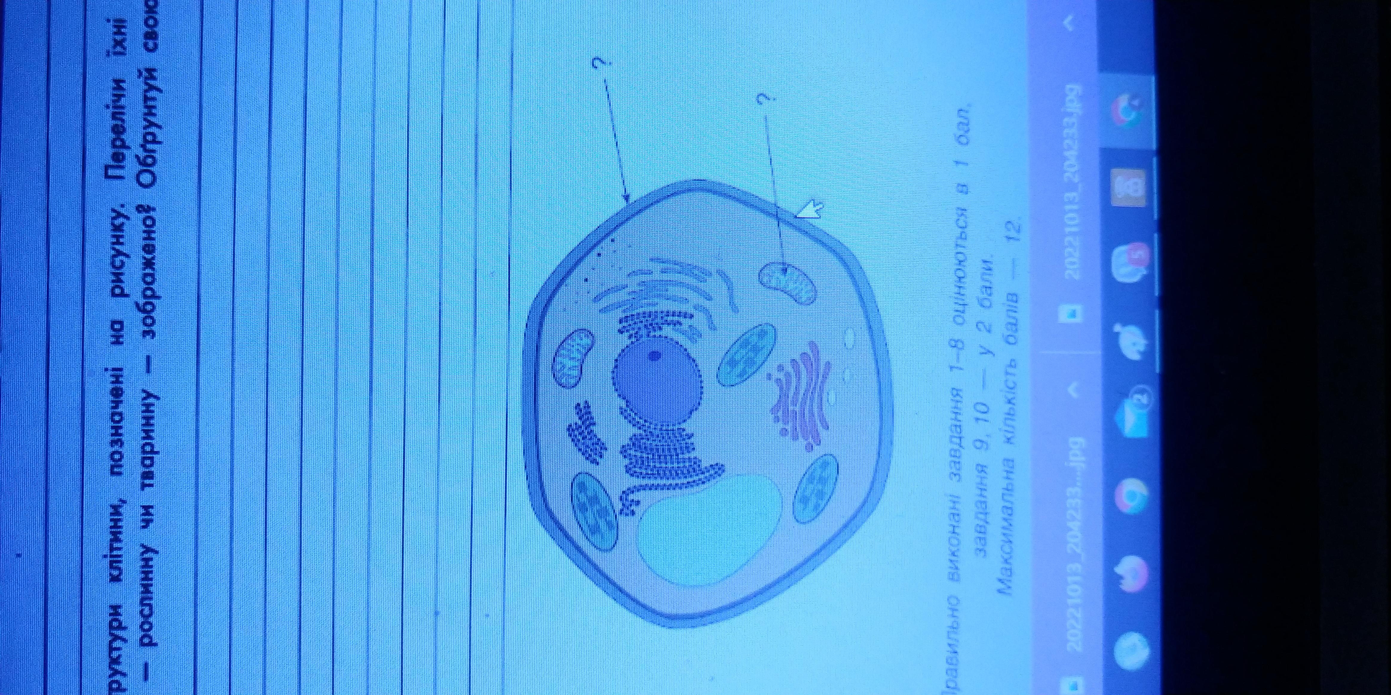 Підпиши структуру клітини, позначені на рисунку. Переліч їхні функції. Яку клітину- рослину чи тварину - зображено? Обгрунтуй відповідь. Помогите пожалуйста