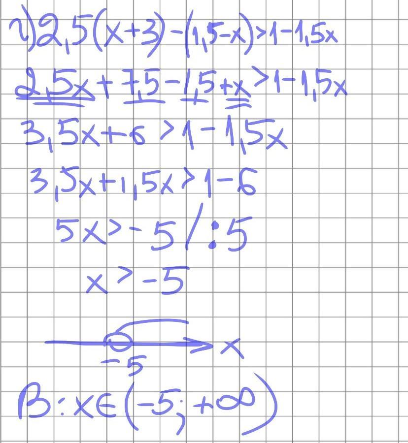 г) 2,5(х+3)–(1,5–х)>1–1,5х