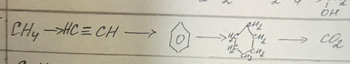 2CH4 →(1000-1500 °C) → HC≡CH+3H2