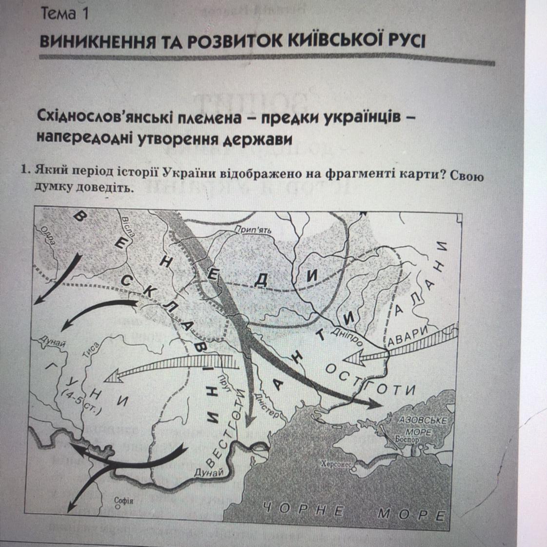 Період історії України відображено на фрагменті карти: Велике переселення народів та Велике розселення слов'ян.