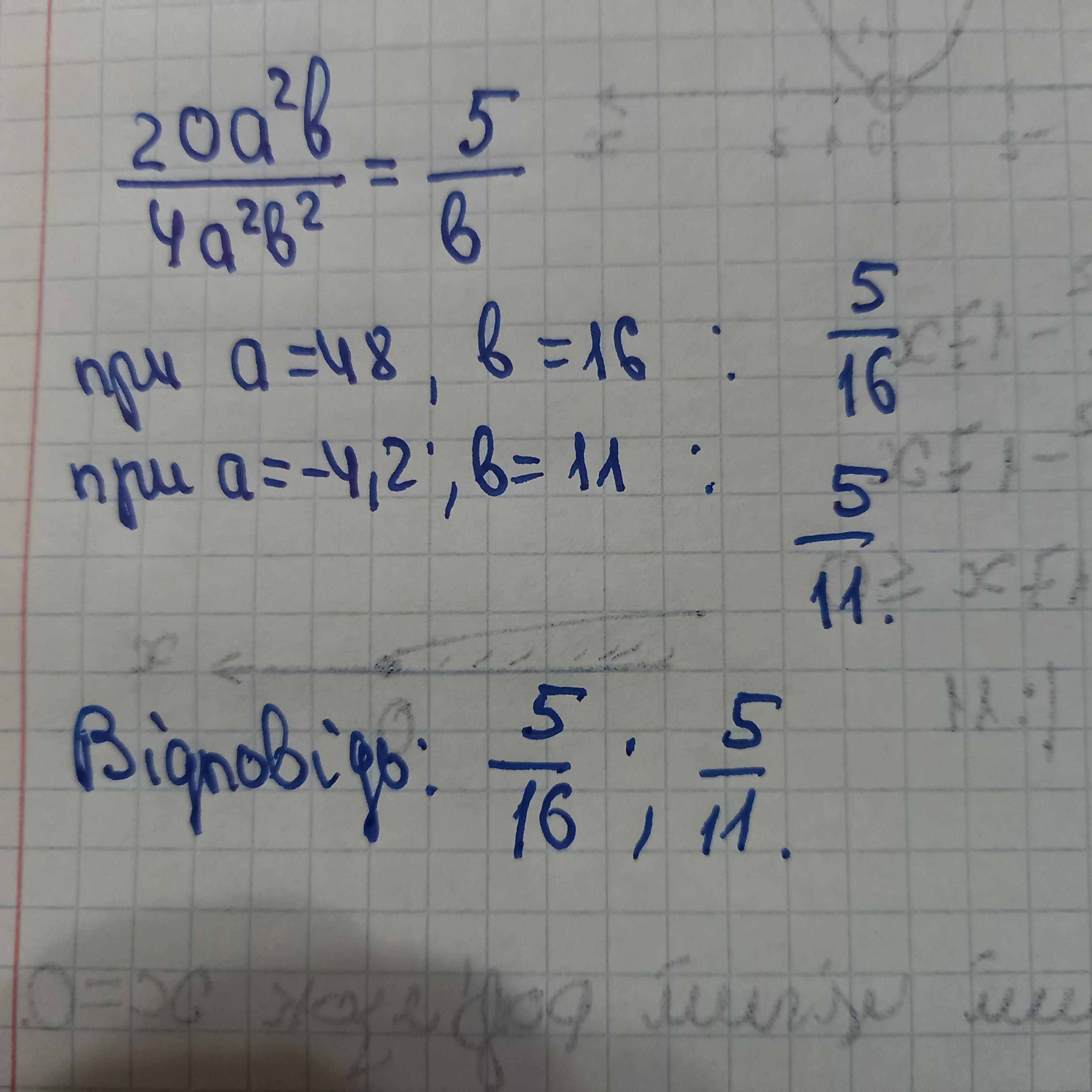 При а=48, б=16 значення виразу = 5/16, при а=-4,2, б=11, значення виразу = 5/11