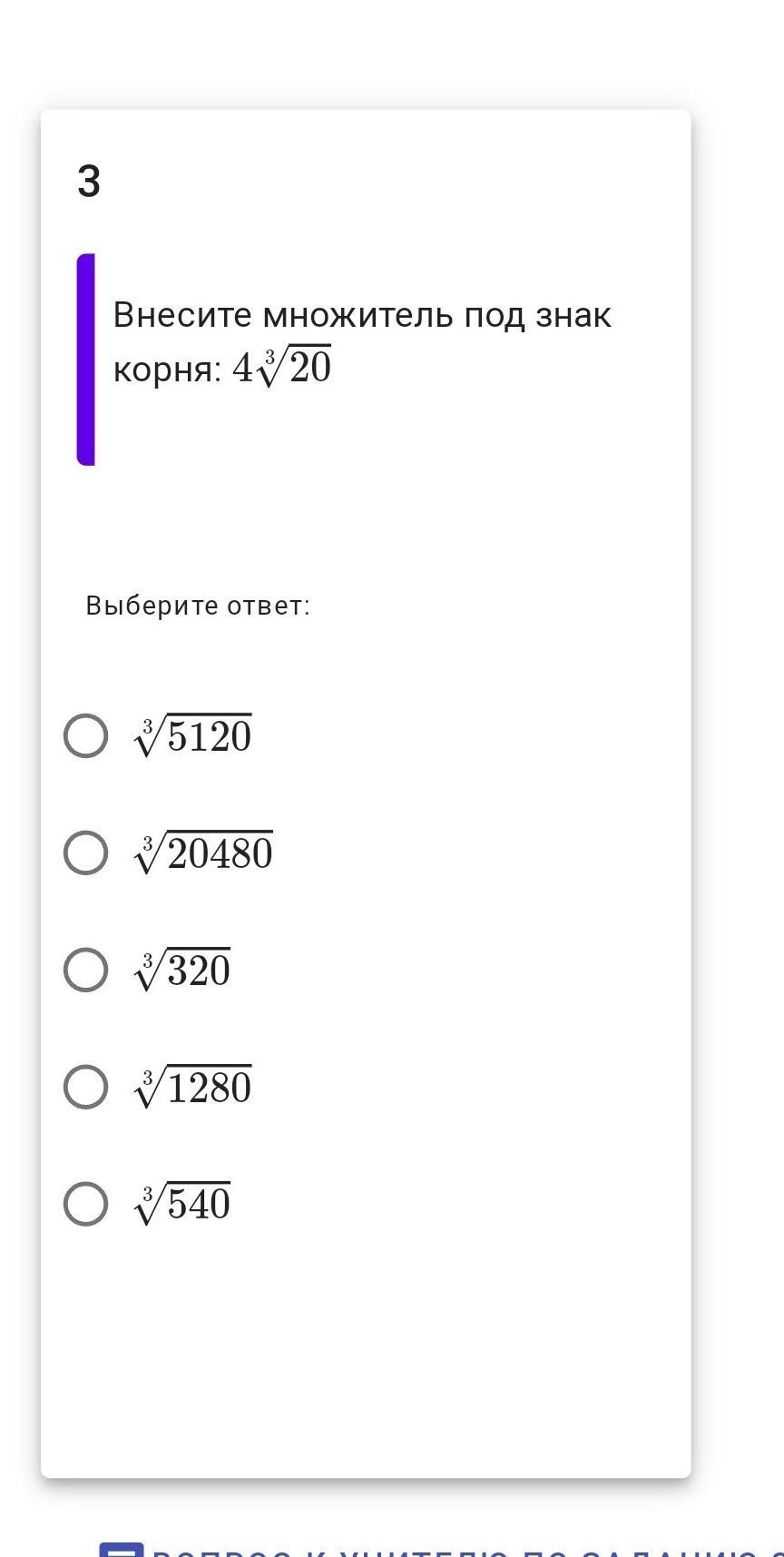 4 •³√20 = ³√(20 • 4³) = ³√(20 • 64) = ³√1280.
