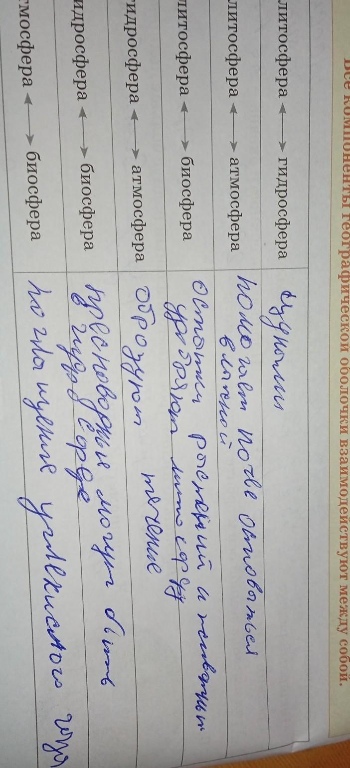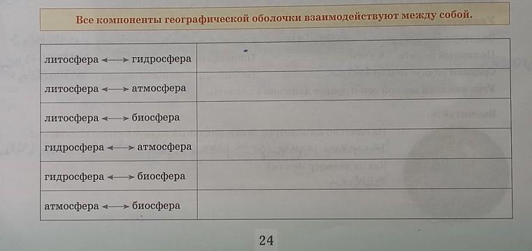 Все компоненты географической оболочки взаимодействуют между собой. литосфера гидросфера литосфера →> атмосфера литосфера →биосфера Гидросфера гидросфера атмосфера атмосфера биосфера → биосфера