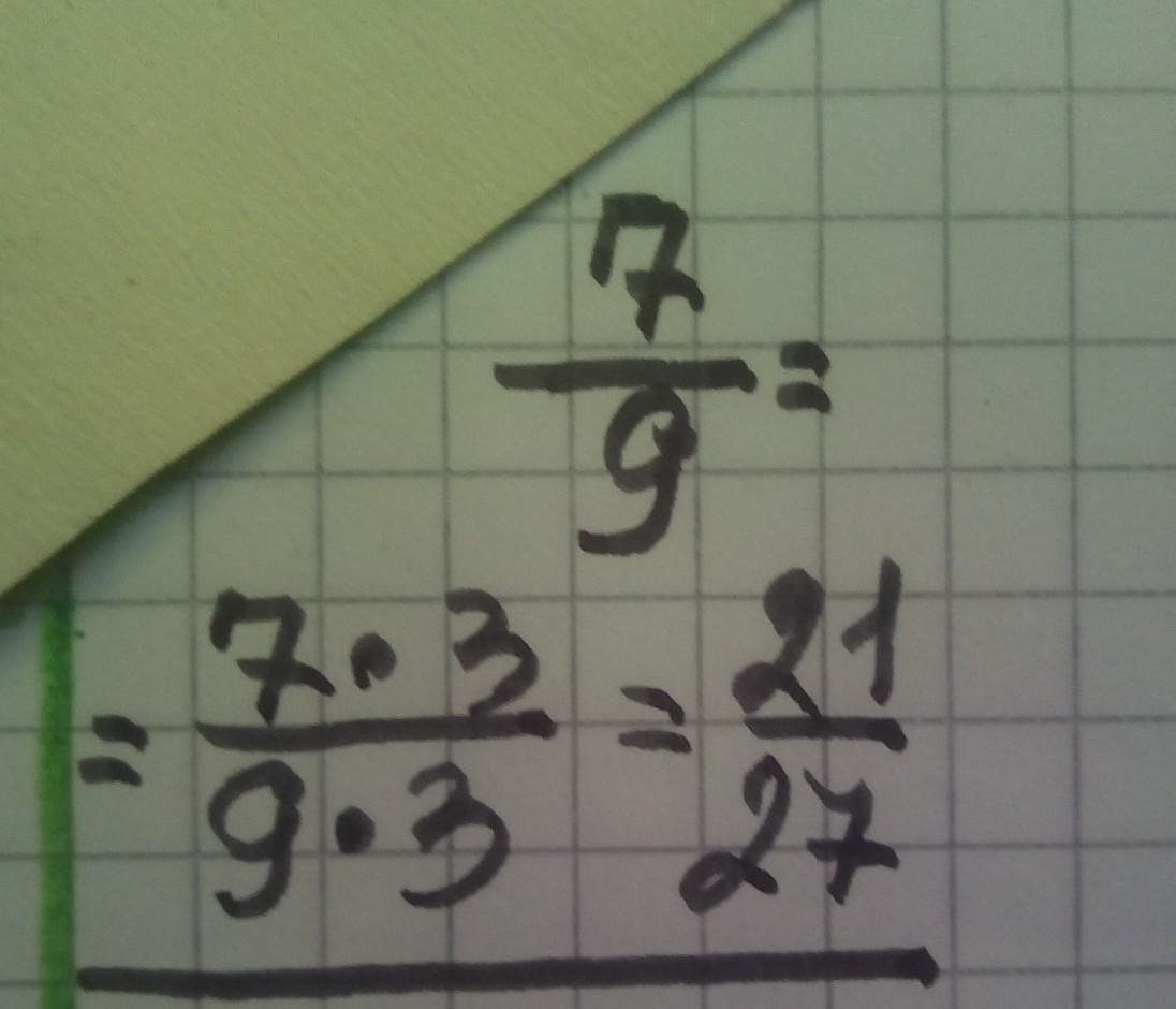 для того щоб звести 7/9 до знаменника 27 треба помножити дріб на 3 і буде: 21/27