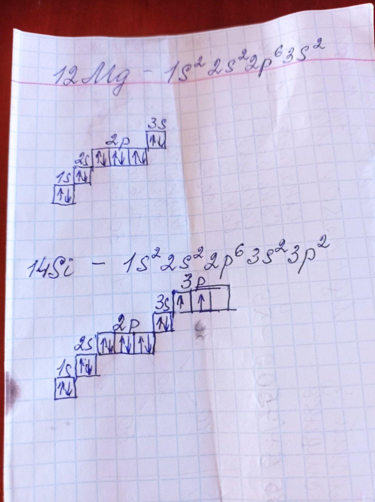 Електронні і графічні електронні формули атомів хімічних елементів з протонними числами 12 та 14