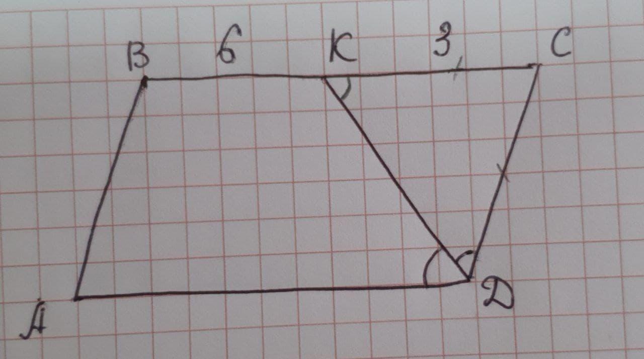 ⇒ ∠АДК = ∠СКД . Тогда ΔСДК - равнобедренный. СК=СД=3см