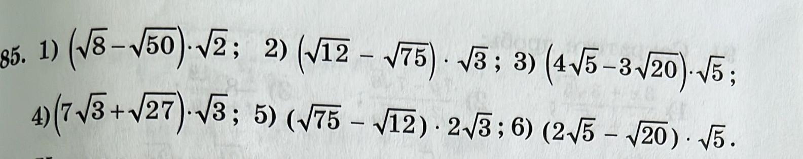 85 (√8-150)/2; 2) (12-175)√3; 3) (475-3-20) 15; 4)(718+(27) 3; 5) (175 - J12) 23; 6) (25 - (20) 15. (√75 - √12) √5.