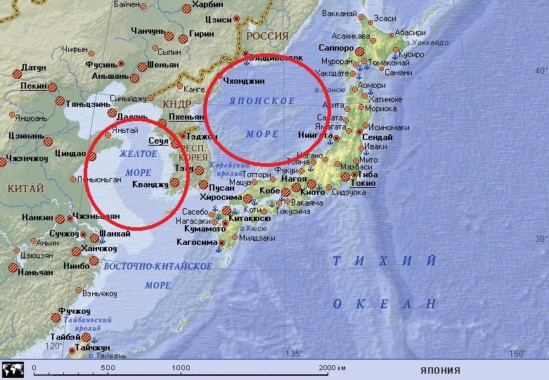 Если сравнить два этих моря, то можно сказать, что количество и мощность речных стоков будет больше у Жёлтого моря, так как в него впадают такие крупные реки как Янцзы и Хуанхэ, количество осадков тоже будет больше у Жёлтого моря, поскольку оно расположено южнее Японского, температура воздуха на поверхности будет выше у Жёлтого моря.Исходя из всего вышесказанного можно сделать вывод,что солёность Жёлтого моря будет ниже (около 32‰), чем солёность Японского (34‰)