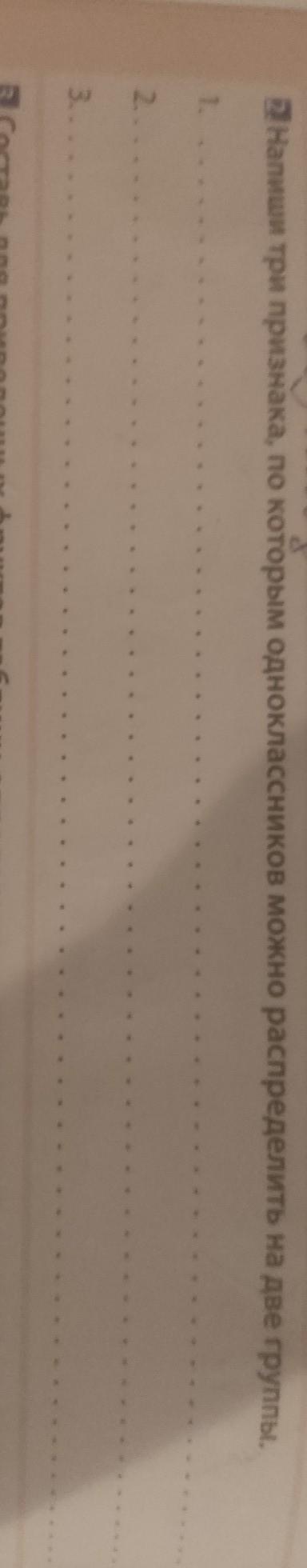2 Напиши три признака, по которым одноклассников можно распределить на две группы.